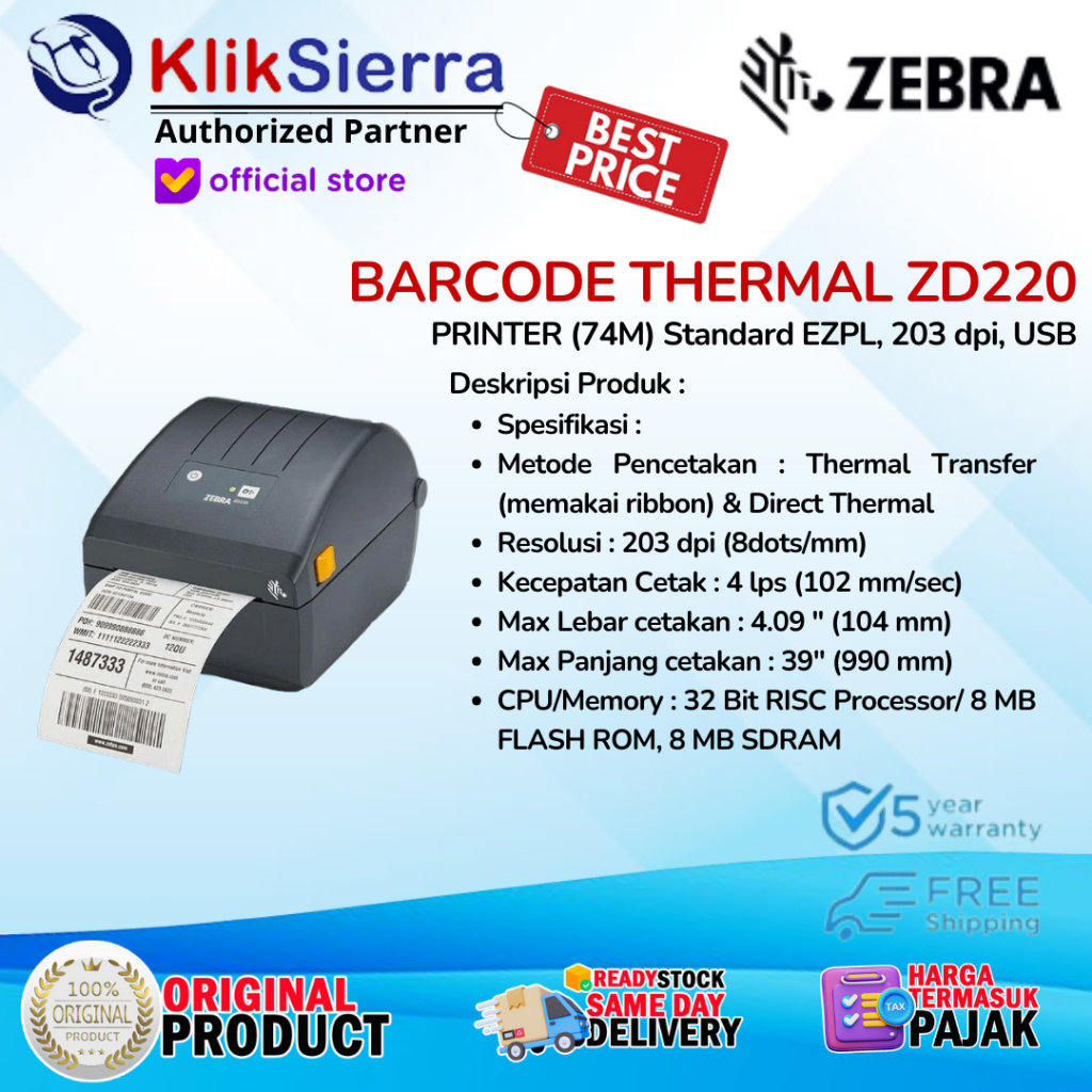 Barcode Printer Zebra ZD220t ini merupakan generasi terbaru dari model printer barcode GC420t desktop kelas menengah paling sukses.