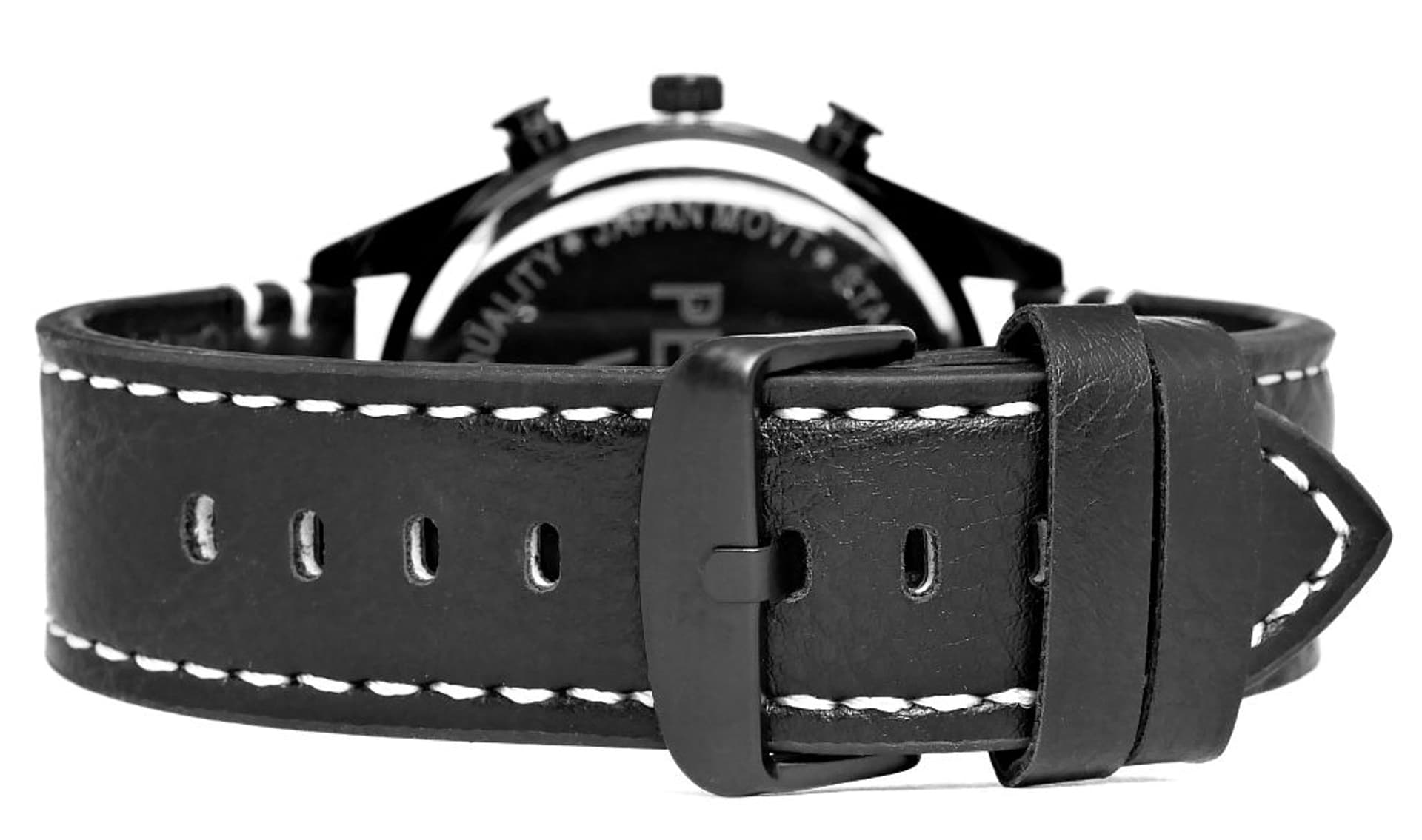 Zegarek Męski PERFECT W288-5 Oficjalna Polska dystrybucjaOpis produktu:Marka: PerfectMechanizm: Kwarcowy Miyota Citizen JapanTarcza: Analogowa z chronografami, które pełnią tylko funkcję ozdobną i nie są aktywne Koperta: Wysokogatunkowa stalSzkiełko: Mineralne o podwyższonej odporności na zarysowania i przypadkowe uderzeniaPasek: Skóra naturalnaWodoszczelność: 3 ATMPodświetlenie: FluorescencjaAntyalergiczny: Tak - nie zawiera niklu - doskonały dla alergikówOryginalność: Na denku zegarek posiada wygrawerowane informacje od producenta, świadczące o oryginalnościWymiary w mm:Koperta: średnica: 45 Tarcza: średnica: 37Grubość: 9,8 Pasek: 22Obwód: 175-225Kolorystyka:Koperta: czarnaTarcza: czarnaIndeksy: srebrne, fluorescencja Wskazówki: srebrne, fluorescencja Sekundnik: czerwony Pasek: czarny, nitka biała