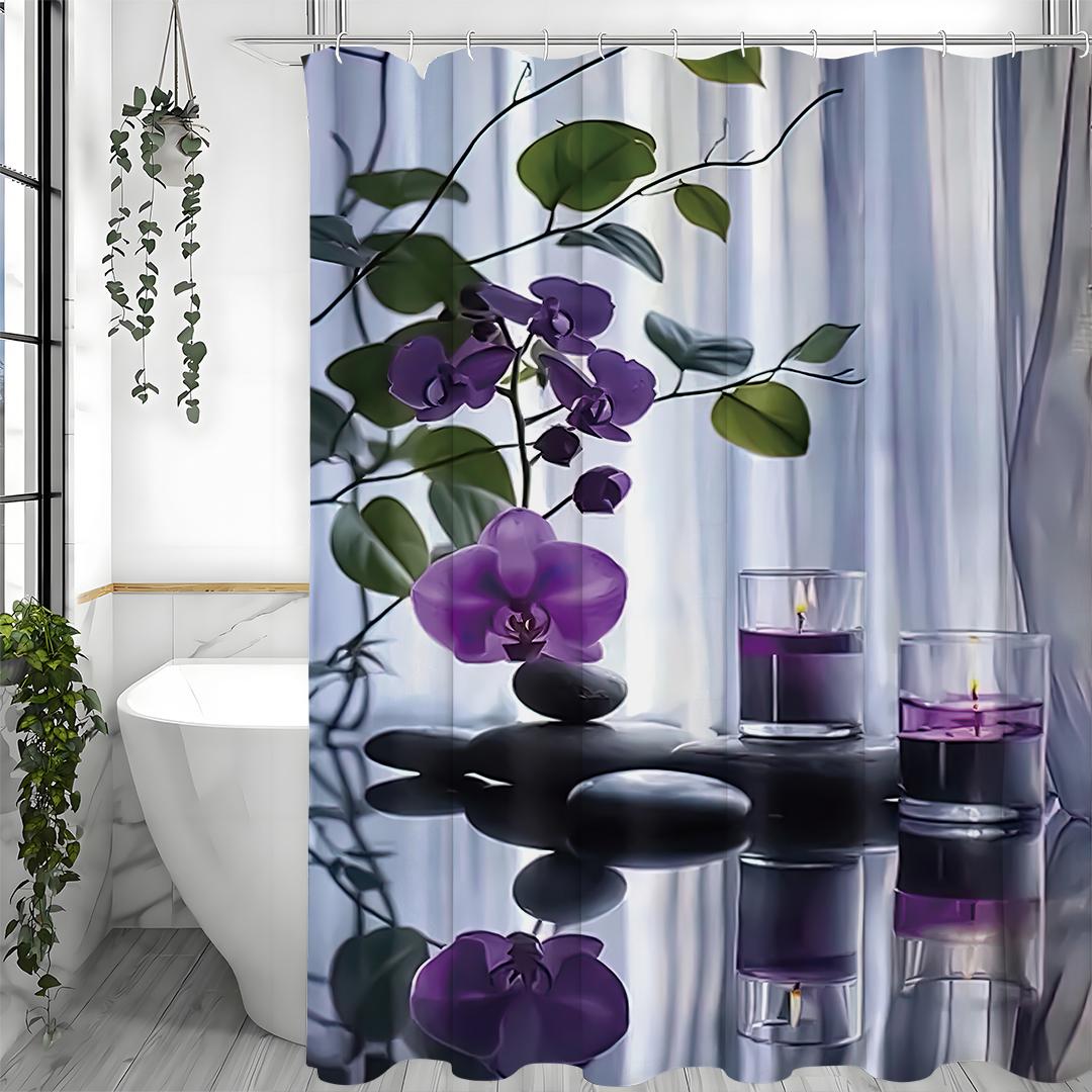 Zen Spa Целебный Черный Камень и Глициния Занавеска для Душа, Декоративная Занавеска для Душа для Ванной Комнаты, Водонепроницаемая Занавеска для Душа с Крючками 90*180cm