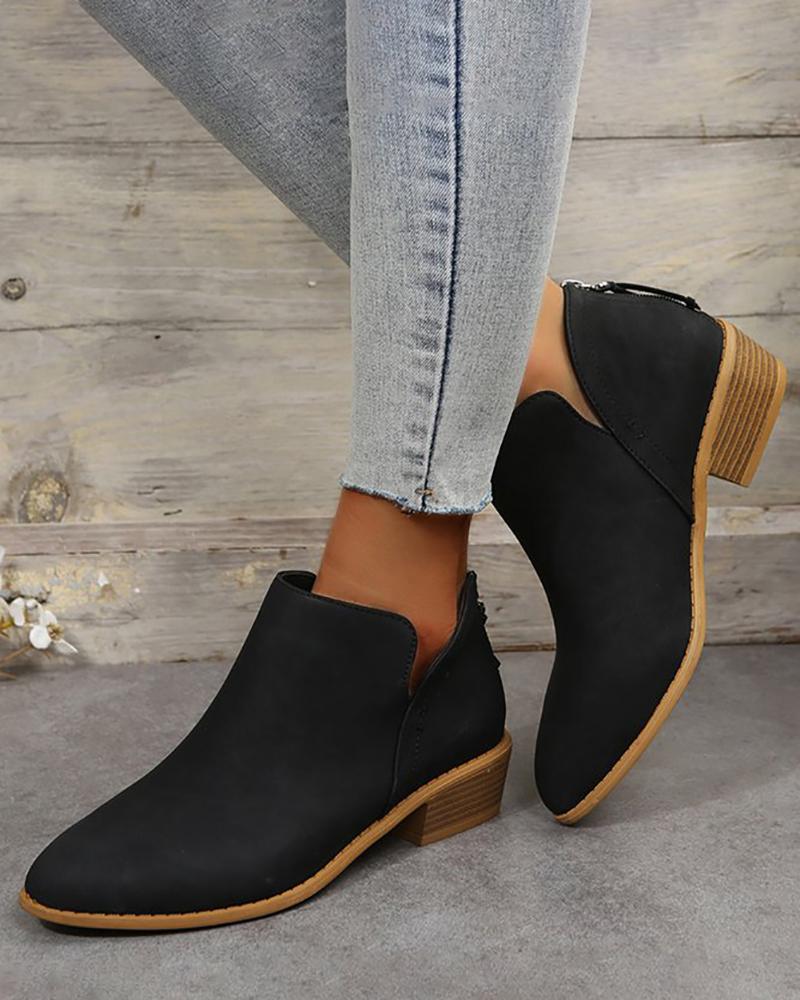 Zipper Design Point Toe Boots, Black