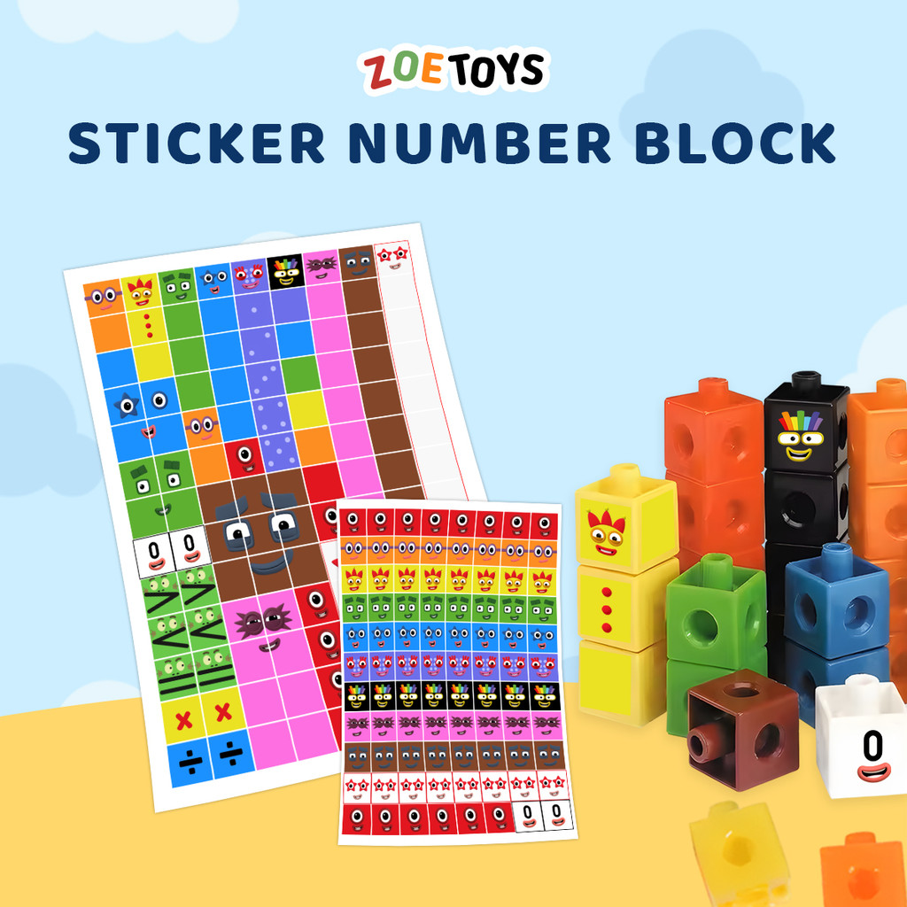 Zuccaqu Sticker Number Block | Mainan Face and Body Linkcube Math Lucu