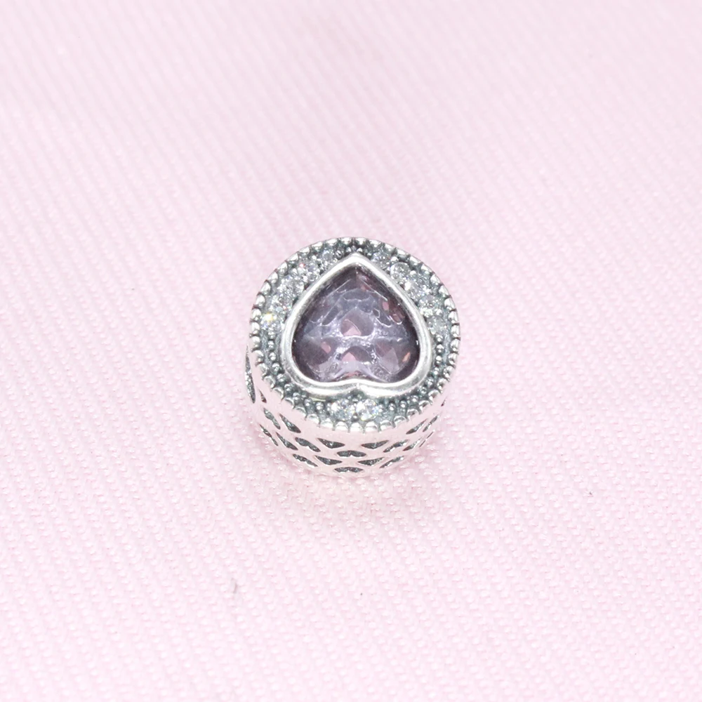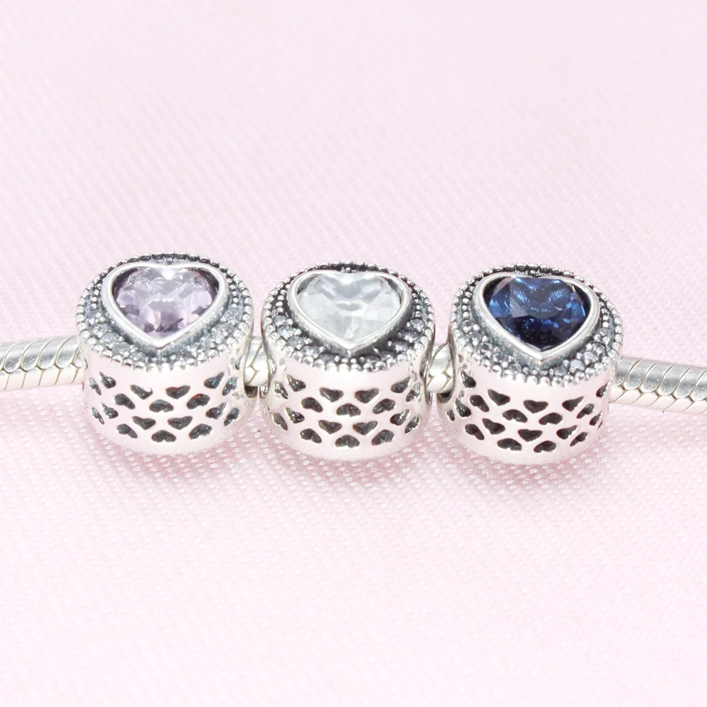 _ Серебряные, синие, белые, розовые шармы-бусины в форме сердца с фианитами, подходят для оригинальных шармов-браслетов pan, подлинные украшен...