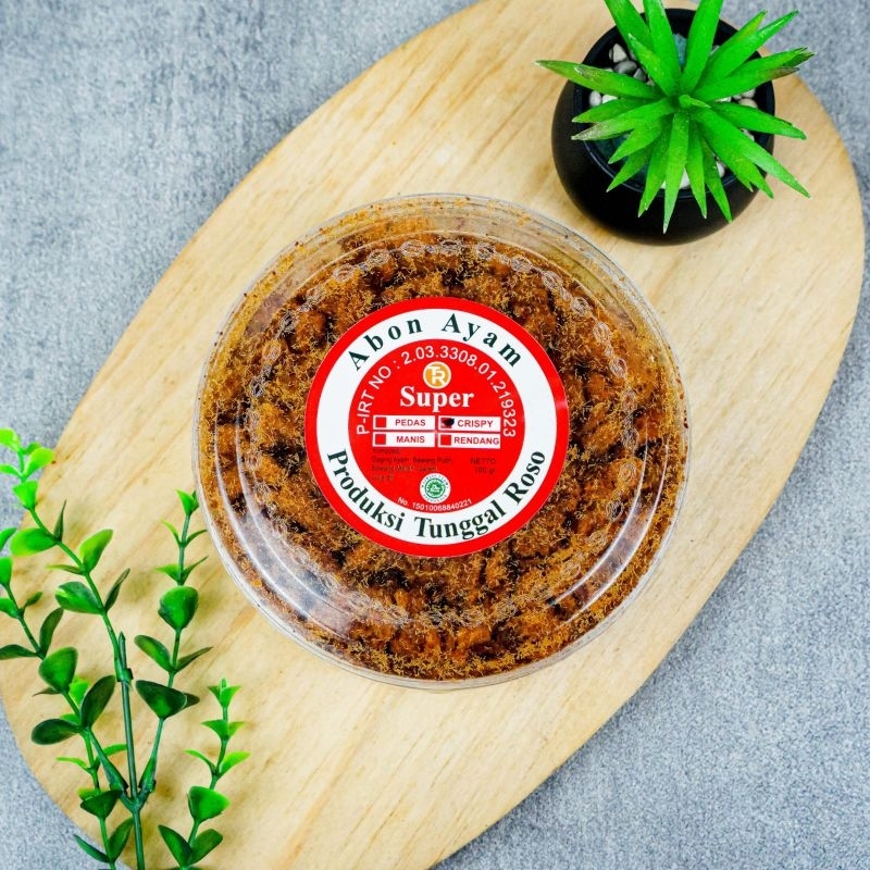 Abon ayam tunggal roso berat 100 gram, memiliki rasa enak, gurihnya terasa banget. dijamin ketagihan.