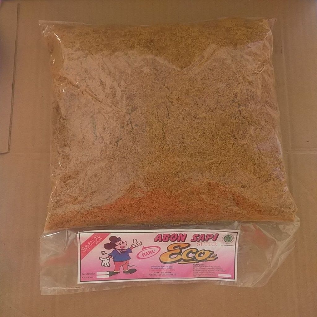 abon sapi cap eco kemasan 1kg tersedia repack 500gr dan 250gr