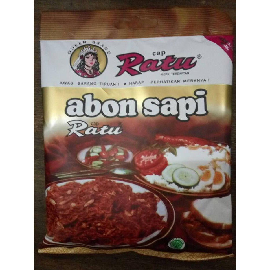 abon sapi cap ratu terbuat dari daging sapi murni dengan bumbu yang terpilih, cocok buat lauk, berat bersih 90gr (dijamin abon ratu asli)