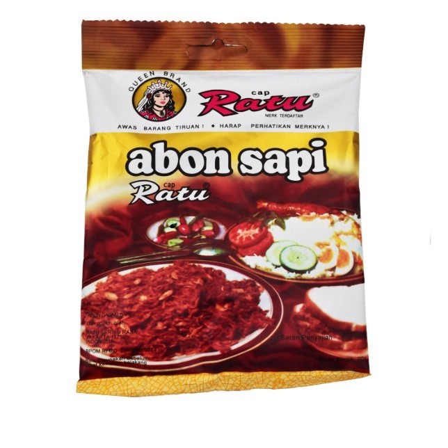 ABON SAPI Cap RATU dibuat dari daging sapi dan bahan-bahan tertentu. Ini memberi makanan Anda lebih banyak rasa dan membuat sandwich Anda lebih lezat.
