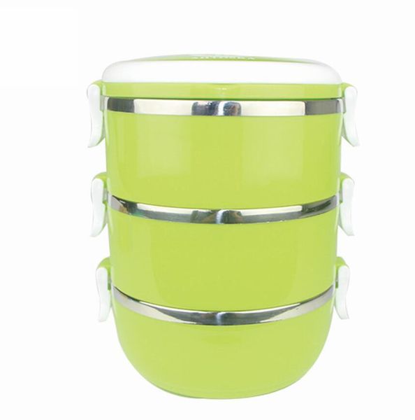 ahtoska 3 слой синий зеленый из нержавеющей стали портативные бенто обедные коробки изолированные ланч-ящик школа герметичный еду контейнер