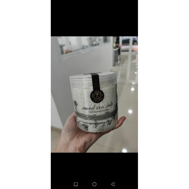 amed sea salt. dipanen dengan tangan dari batang pohon kelapa di pantai tropis Bali Timur. garam halus kaya mineral . kemasan 400 gr