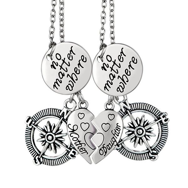ancient silver no matter где день сердца компас ожерелье матери дочь конструктора матери ожерелье set женщины мужчины ювелирные изделия лучш