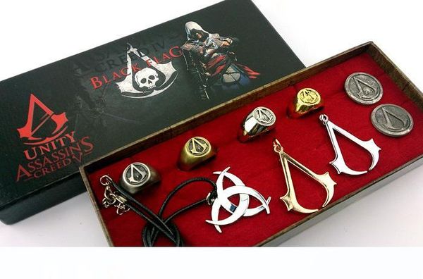 assassins creed necklace a complete set of necklace and rings deiss mond decorations brooch skeleton ghost head badge assassin creed cosplay
