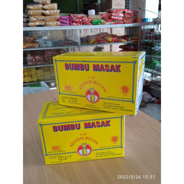 atom bulan merupakan bumbu komplit yang komposisinya sudah terdiri dari garam,penyedap,msg dan bahan lain yang cocok untuk masakan maupun untuk bumbu cimol,otak2 dan gorengan lainnya.