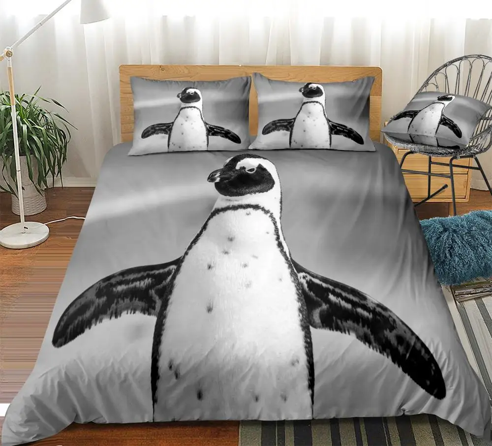 Комплект постельного белья с рисунком пингвина, серое покрывало с рисунком диких животных, домашний текстиль для мальчиков, комплект кровати с милым пингвином