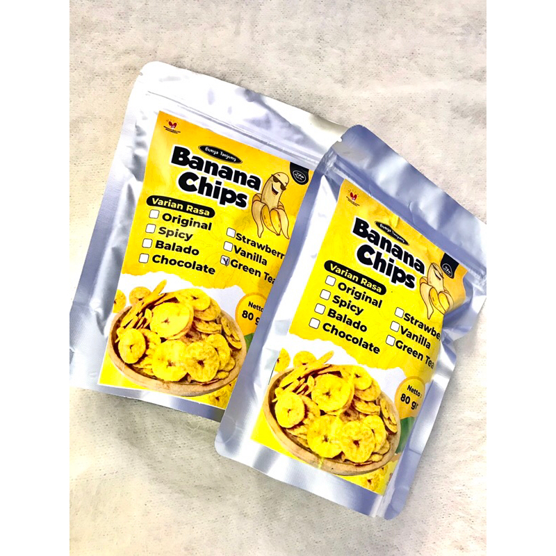 banana chips merupakan pisang crispy (cemilan) yang di lumeri oleh berbagai aneka rasa yaitu :