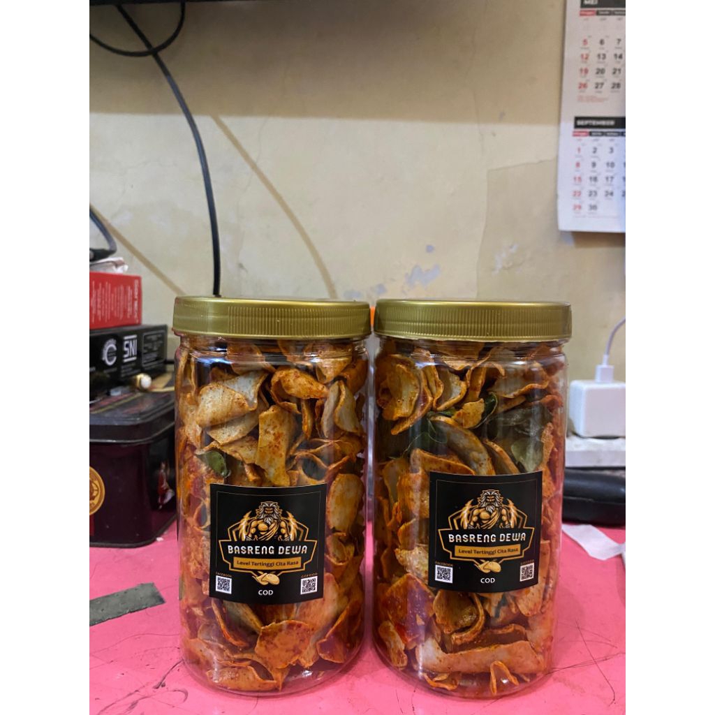 basreng pedas daun jeruk 2 toples ukuran 1000 ml