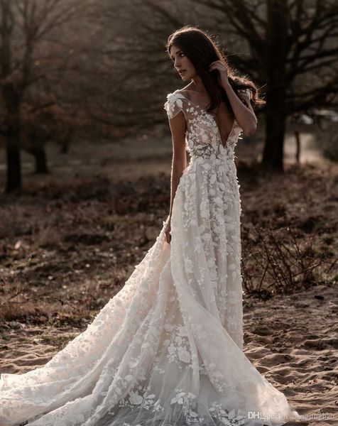 berta summer boho a-line свадебное платье иллюзия с лифом и 3d-аппликациями на спине с цветочным принтом пляжные свадебные платья с глубоким, White