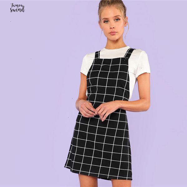 bib карманный фронт сетки пинафор платье 2019 лета рукавов опрятные платья женские черные ремни короткие прямые платья, Black;gray
