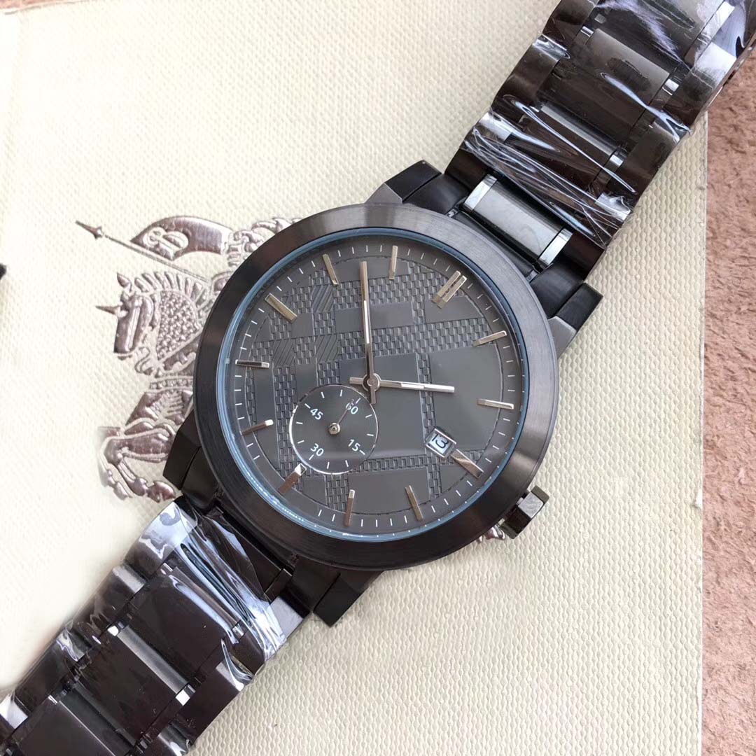 42MM Dress Modern Style Mens Watch Watches Quartz Chronograph Movement Grey Dial With Black Stainless Steel Bracelet
