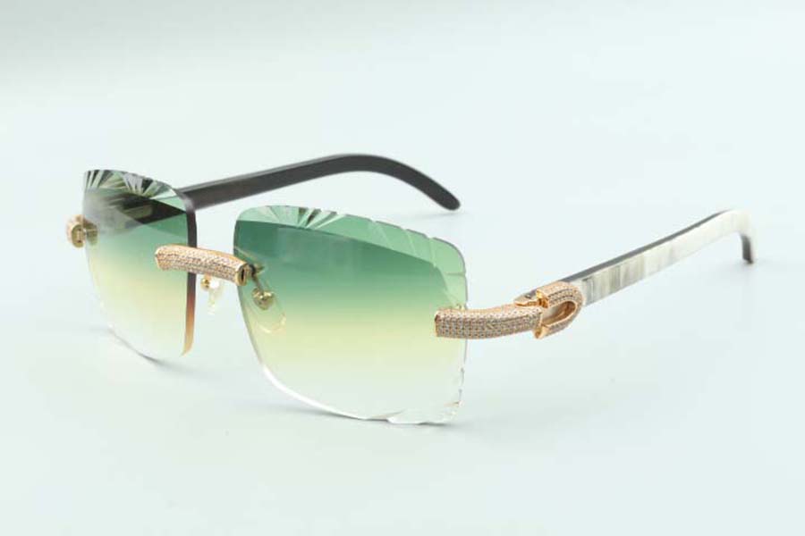 2021 Newest style cutting lens micro-paved diamonds sunglasses 3524020, natural mixed buffalo horns temples glasses, size: 58-18-140mm