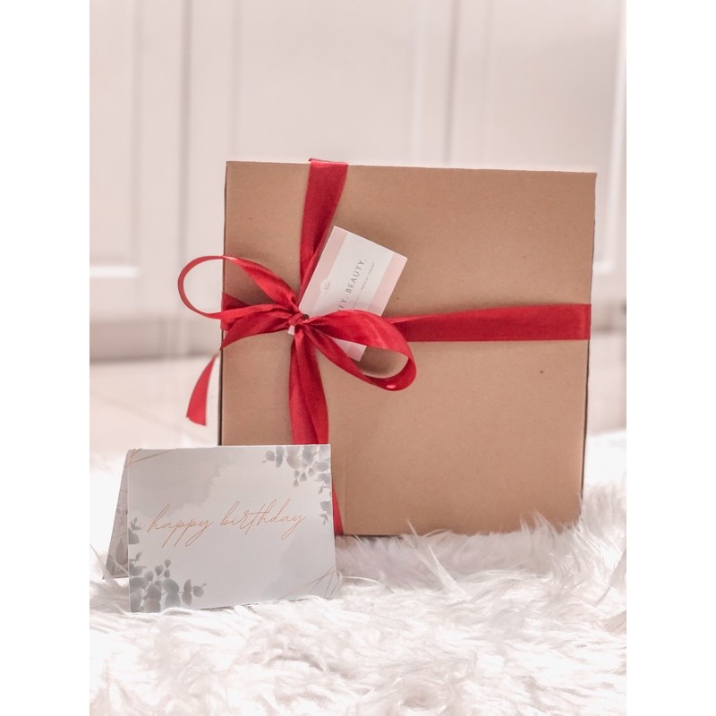 include ribbon + custom card folded