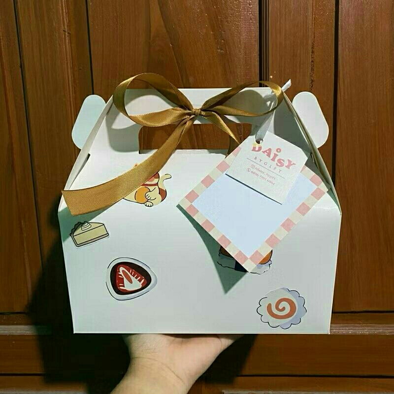 harga hanya untuk box aja free stiker dan pita yaa bisa req mau warna apa