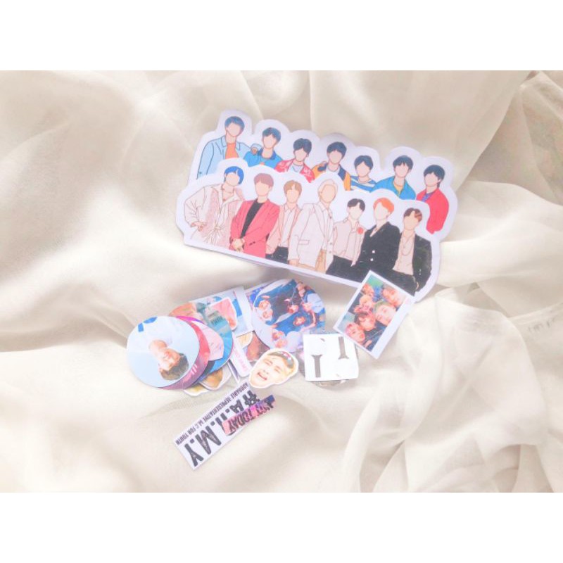 31 pieces inside , bts memes, random pieces , 2 big pieces, homemade , sticker texture: glossy