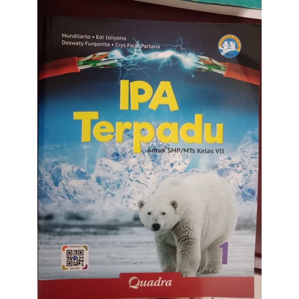 buku IPA terpadu SMP kelas 1 merk QUADRA , pernah di pakai tapi masih bersih dan rapih di jual setengah harga