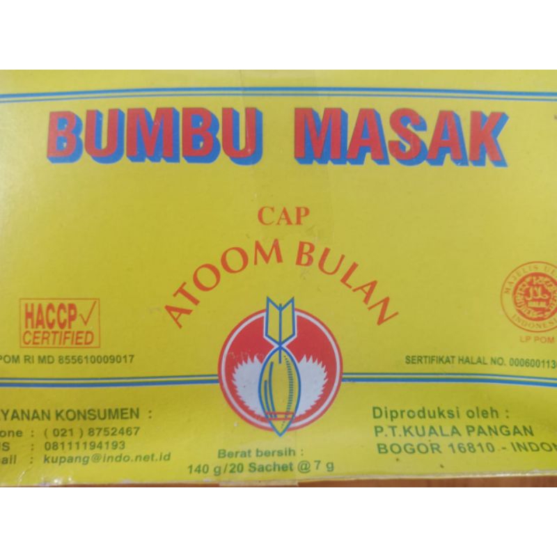 bumbu penyedap rasa, gurih, cap atom bulan, bisa ditambahkan untuk masakan