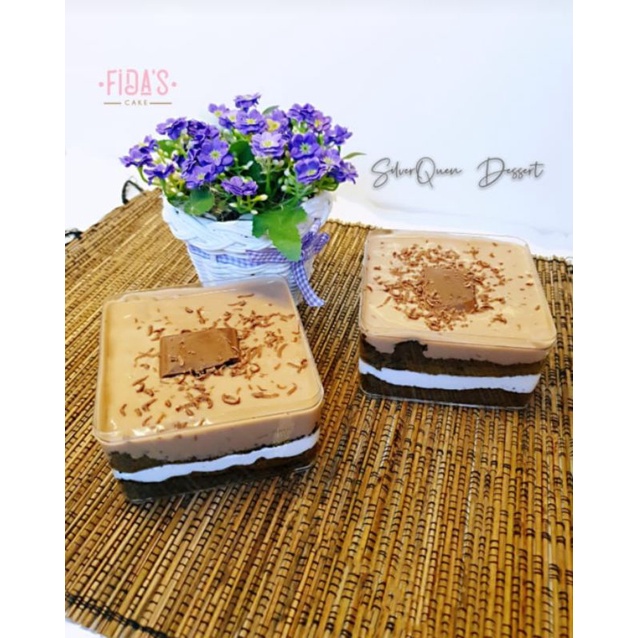 cake coklat berisi cream dan bertoping silverqueen
