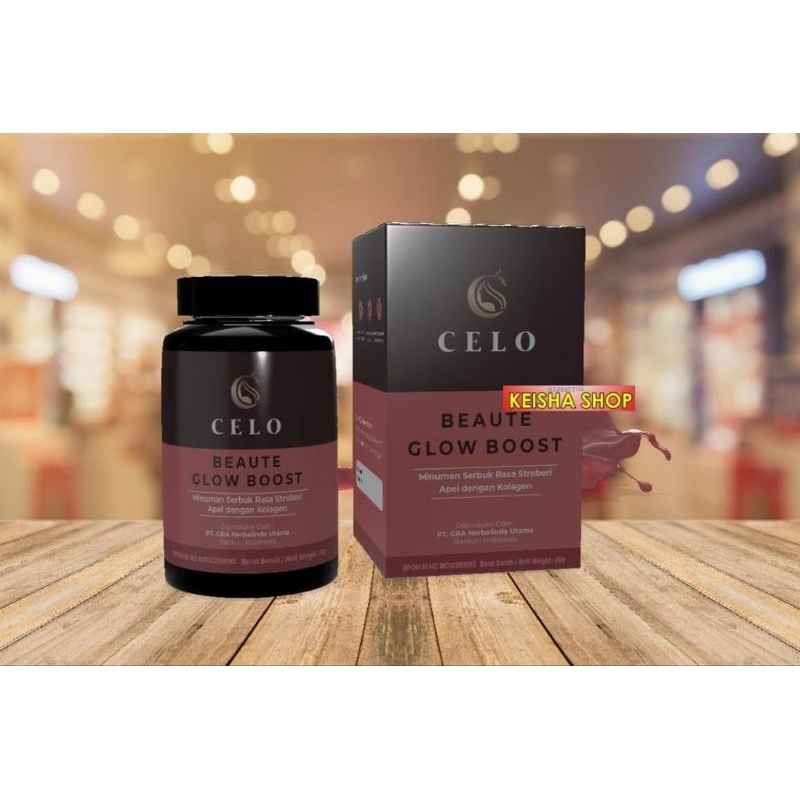 Celo beauteglow boost minuman serbuk rasa strawberry apel dengan collagen ikan salmon
