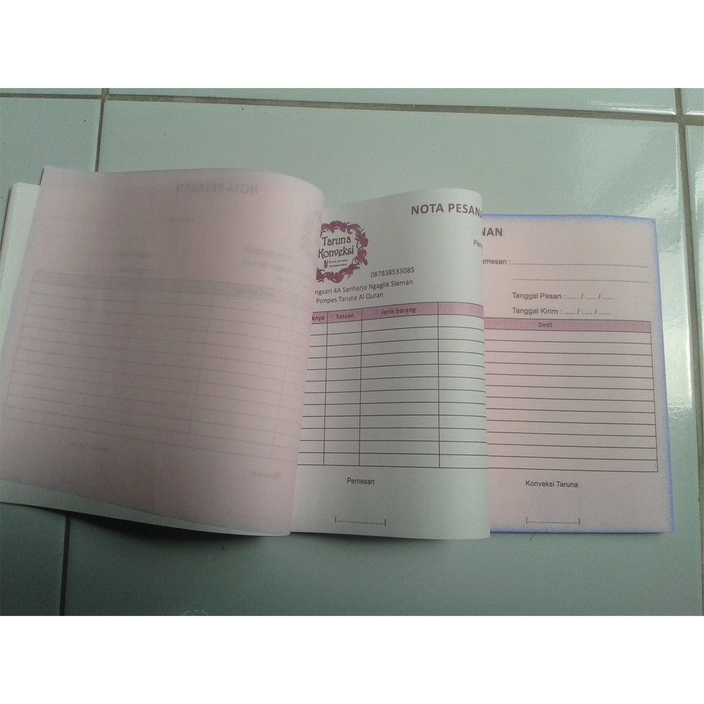 *Nota sudah dijilid dan diporforasi (di kasih lubang - lubang untuk memudah kan penyobekan) bagian atasnya.