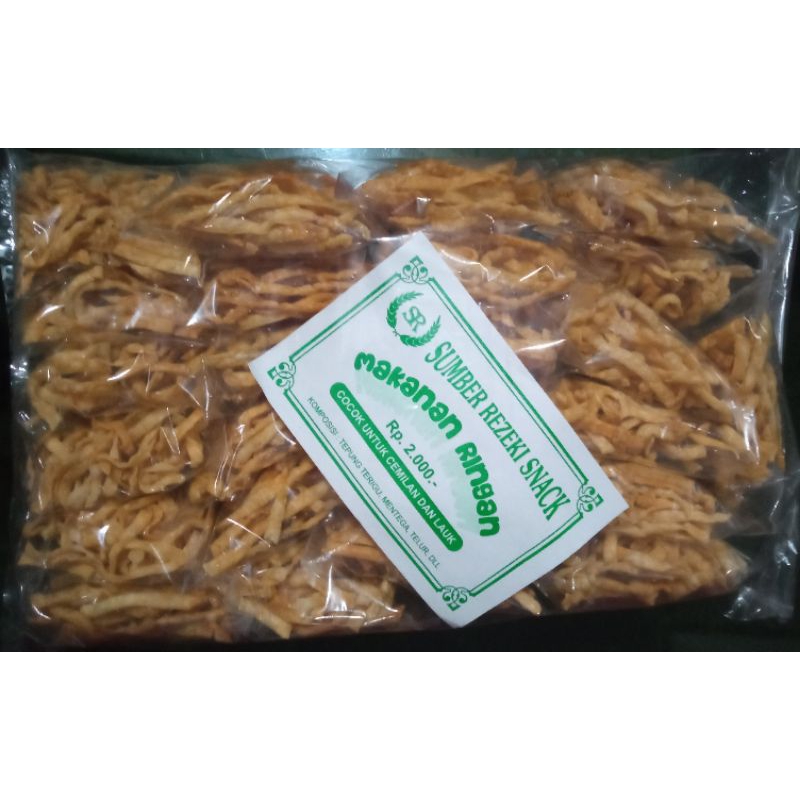 makanan ringan renyah dan gurih cocok untuk temen makan bakso dan cemilan. open po 1hari setelah order langsung di dibuat, khusus jabodetabek saja. exp: 1 bulan
