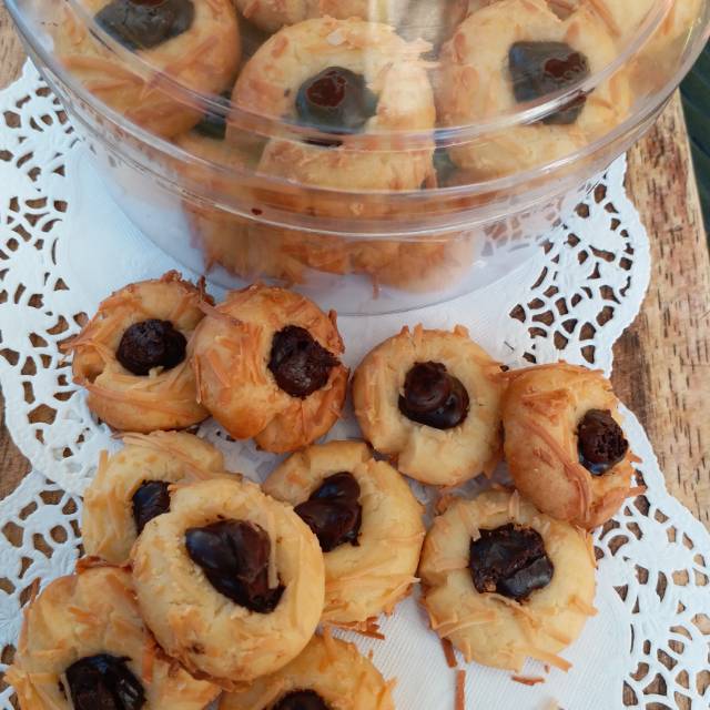 Kue kering memakai butter anchor dengan selai chocolate dan keju diatas nya.