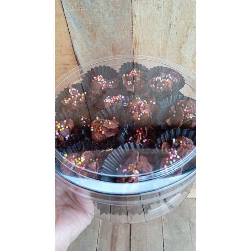 kue kering atau cemilan dengan bahan dasar sereal jagung yg di balut cokelat dan kacang mede di dalamnya.. pokoknya nyoklat✨