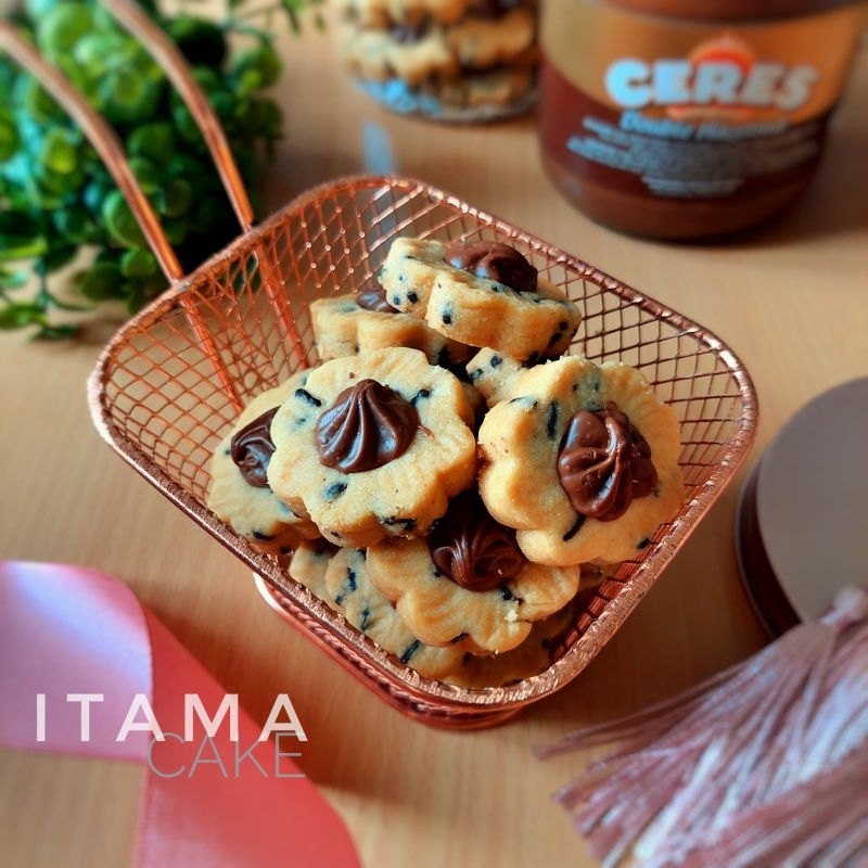 tart shell kukis kress dengan coklat meises dqn toppinh cheres hazelnut yg nyoklat dan lembut