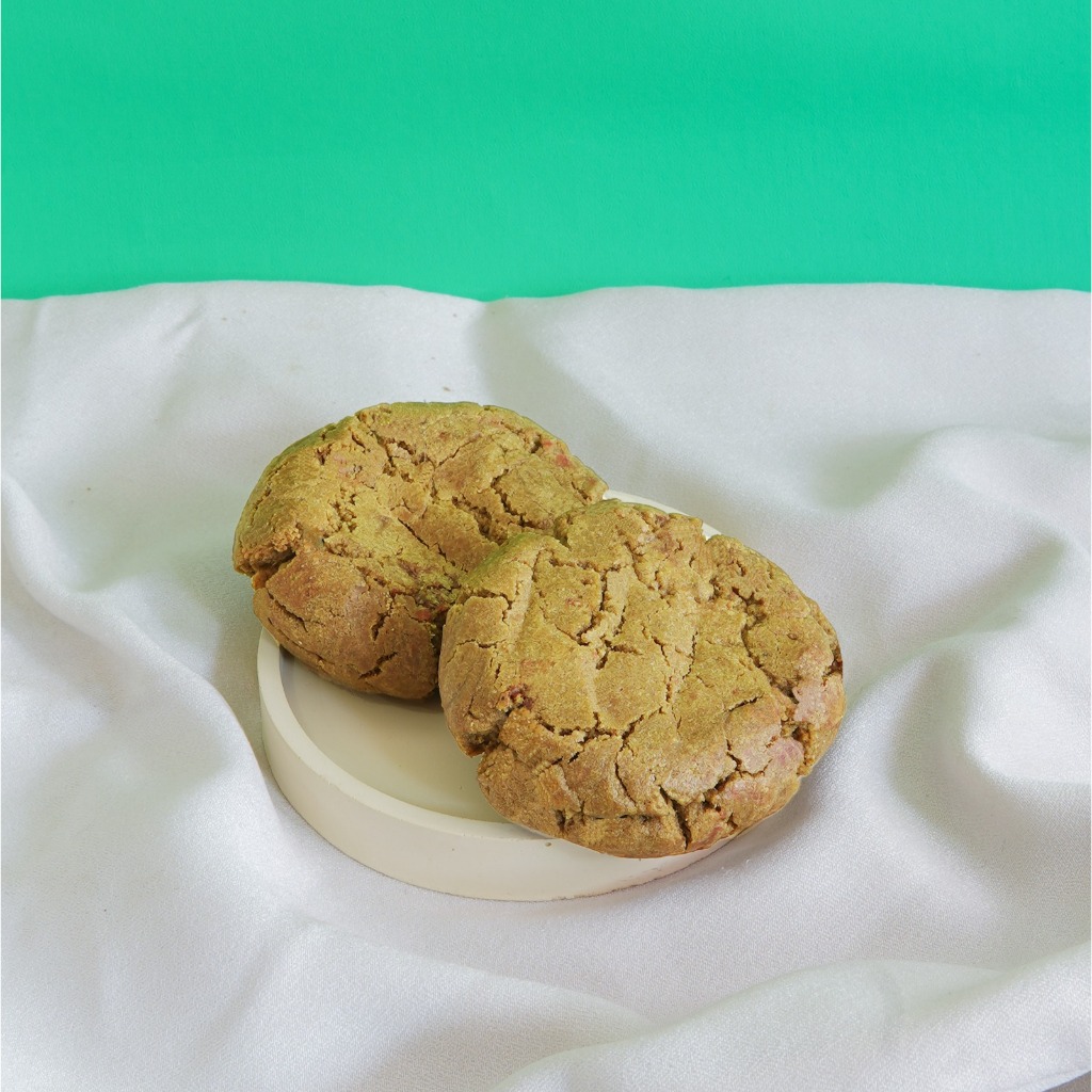 cookie matcha diisi dengan selai coklat