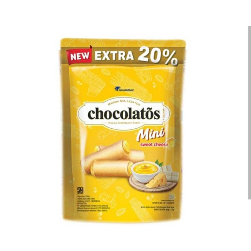 chocolatos Mini Wafer Roll Cheese 65 + 13 g adalah sebuah snack wafer berbentuk stick mini. Dibuat menggunakan bahan bahan berkualitas tinggi yang diolah dengan proses yang higienis serta menggunakan teknologi modern. Snack dengan wafer yang digulung membentuk stick kecil kecil. Dengan isian krim keju lumer yang nikmat dan gurih yang terbuat dari keju pilihan. Wafer roll memiliki rasa yang manis sekaligus creamy berpadu dengan sensasi renyah dari wafer, menghasilkan perpaduan sensasi yang sempurna. Cocok dijadikan sebagai cemilan yang menemani saat beraktivitas. Dikemas menggunakan kemasan standing pouch ukuran 65 gram ekstra 13 gram. Segera beli dan miliki chocolatos Mini Wafer Roll Cheese 65 + 13 g sebagai teman aktivitas anda.