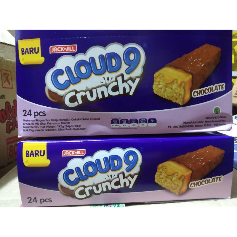 cloud 9 crunchy makanan ringan bar krispi bersalut coklat rasa coklat isi 24pcs