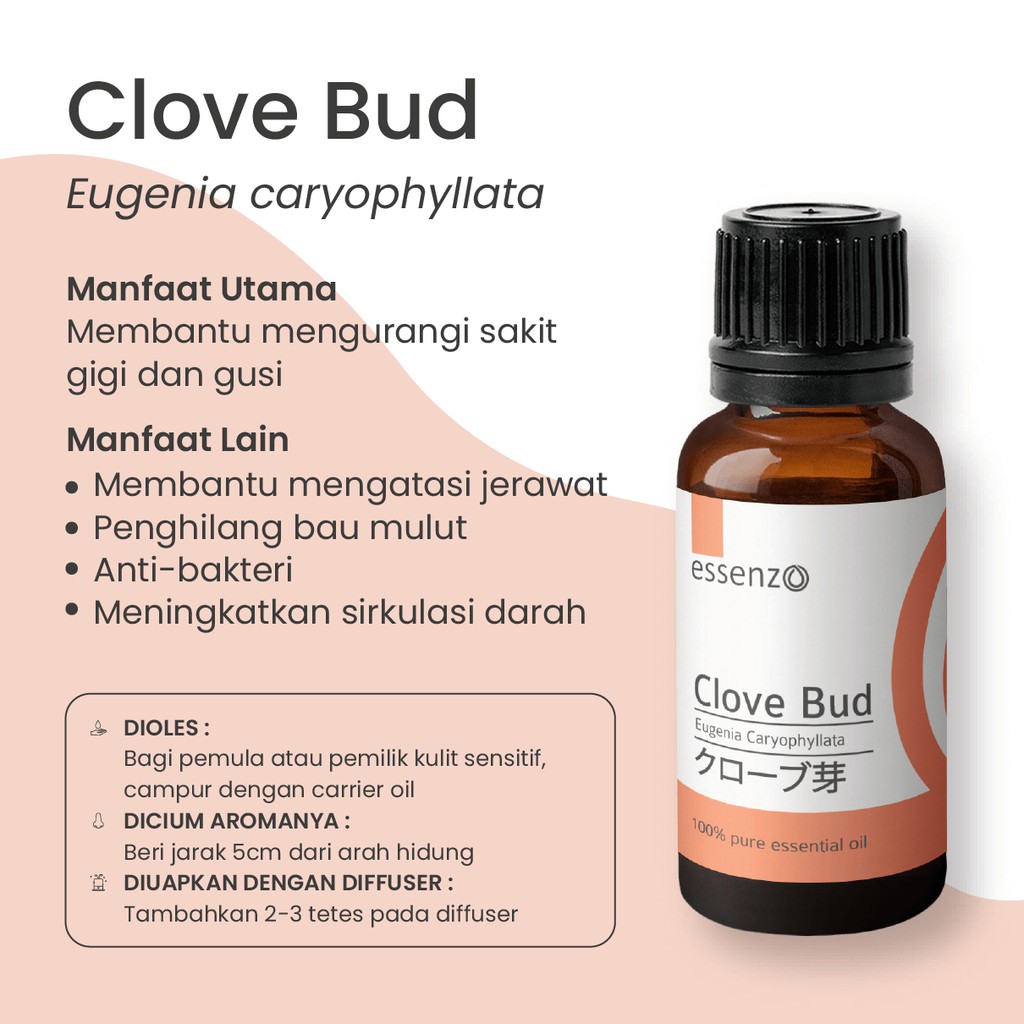 • jika menggunakan diffuser, campurkan 2-3 tetes clove bud oil dengan kurang lebih 100ml air.