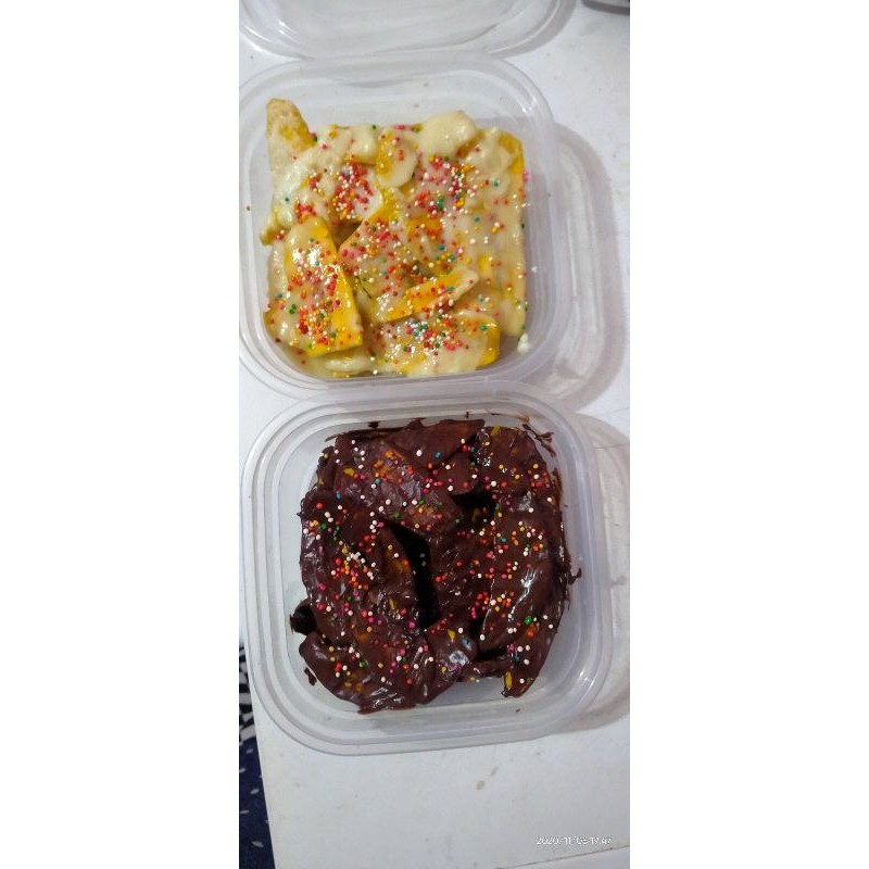 kripik pisang yg diceplup coklat lumer yang sangat enak
