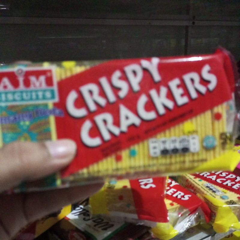 crispy cracker dari aim biscuits,rasa enak gurih berat 150grm, expired aman