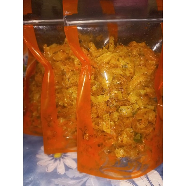 lumpia kering daun jeruk ,renyah,dengan taburan bumbu pedas asin .