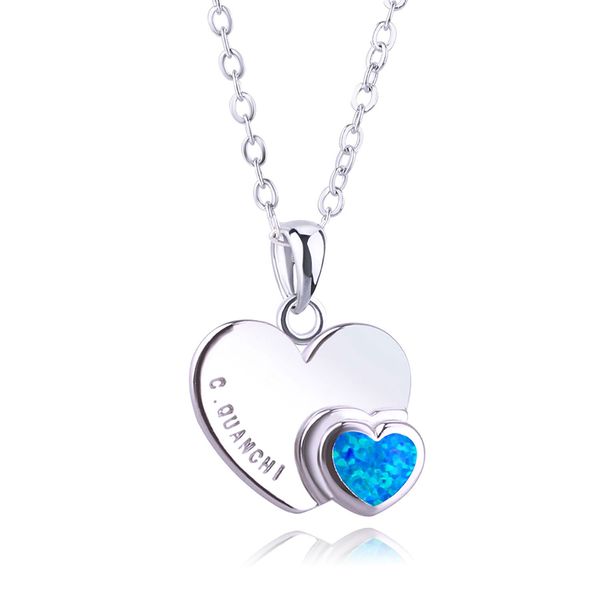 dainty стерлингового серебра 925 сердце кулон ожерелье с опалом камень ювелирные изделия подарок на день рождения для женщин девочек, Silver