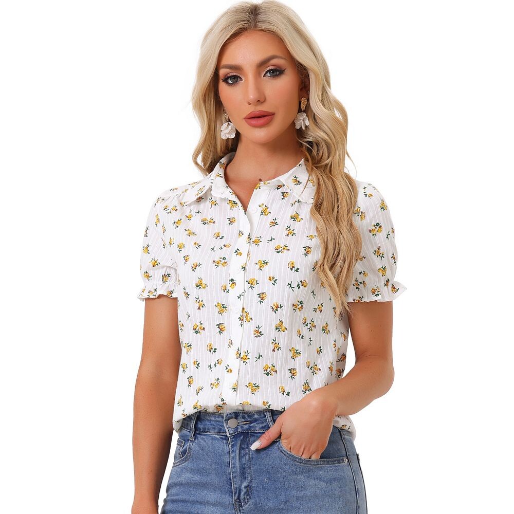 Женская рубашка с милым принтом, повседневная женская блузка с длинными рукавами, весенне-осенний кардиган с лацканами, топы с длинными рукавами S(40-50KG) абрикосовый
