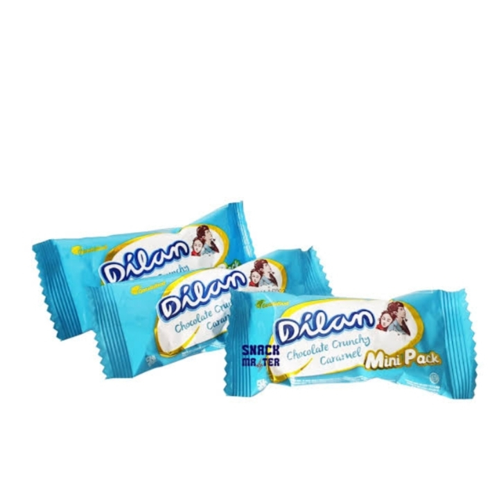 Dilan Chocolate Crunchy Caramel Mini Pack dalam Pouch. Kenikmatan Coklat 5 in 1 dalam kemasan Mini.