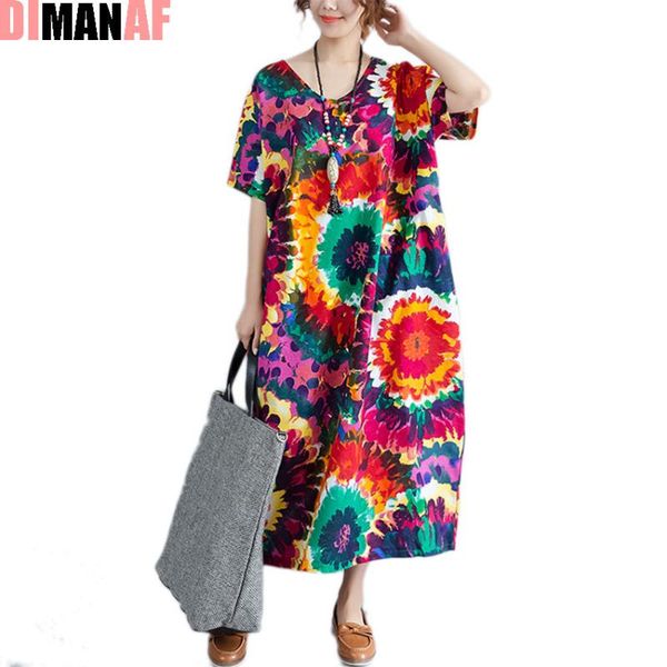dimanaf 2020 платье плюс размер лето женщины белье цветочные печати подсолнечника стиль женский пляж элегантные повседневные платья сыпучие, Black;gray