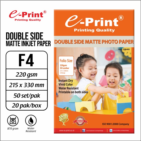 e-Print Double Side Matte Inkjet Paper Folio 220gsm