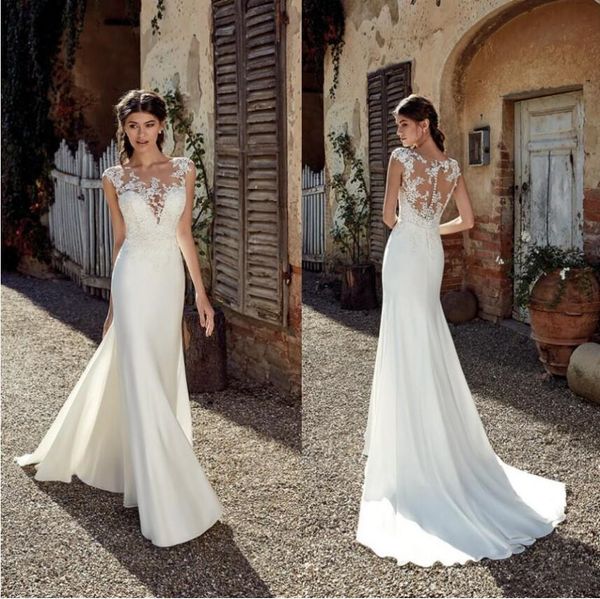 eddy k 2019 свадебные платья сексуальное кружевное платье с аппликацией и прозрачным вырезом пляжные свадебные платья с скользящим шлейфом б, White