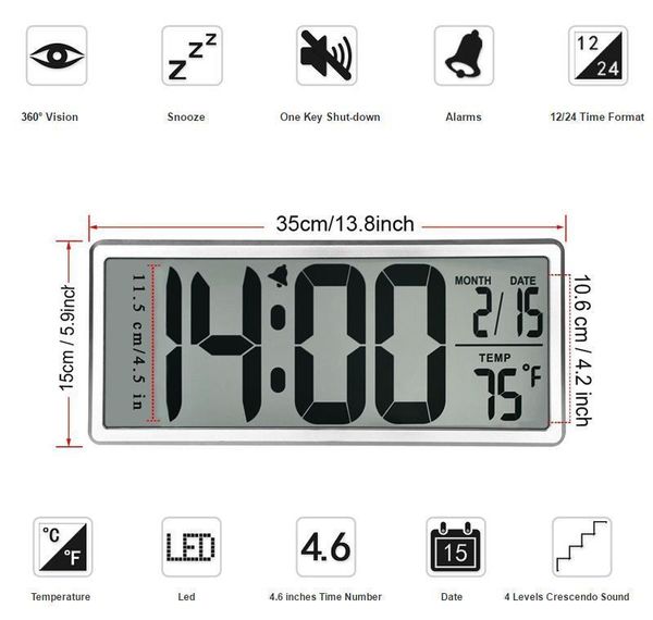 extra high vision цифровая настенные часы джумбо будильник часы 13.8 "жк-дисплей тревога sn календарь кламар te sqcxyh dh_seller2010