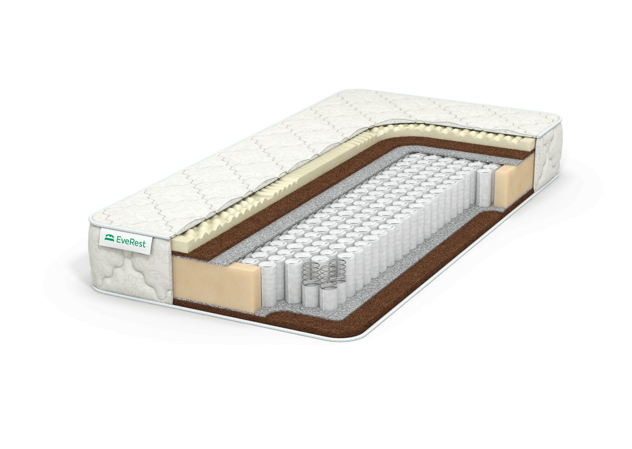 Матрас EVEREST Ту-Вэй Кокос Латекс Хард TFK 220х180, Бежевый;белый;серый;серебристый, Кокос Латекс Хард TFK