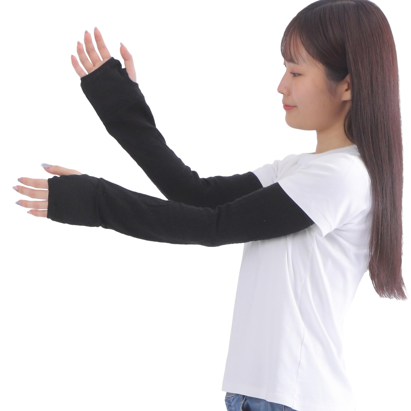 fivebear Льняные нарукавники с защитой от УФ-лучей, длинные, женские, черные, защита, рукав, Япония, (fb40054) чёрный